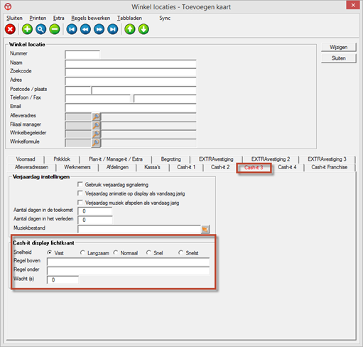 - Hier is enkel het veld "Cash-it display lichtkrant" van toepassing. (Dit is de tekst die op het display voorbij loopt)