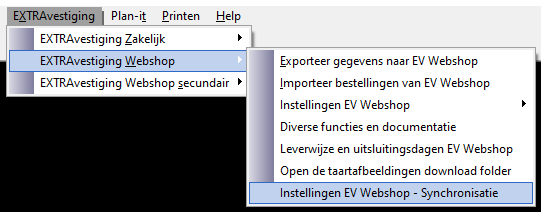 - Ga naar menu [ EXTRAvestiging Webshop | Instellingen EV Webshop - Synchronisatie ]