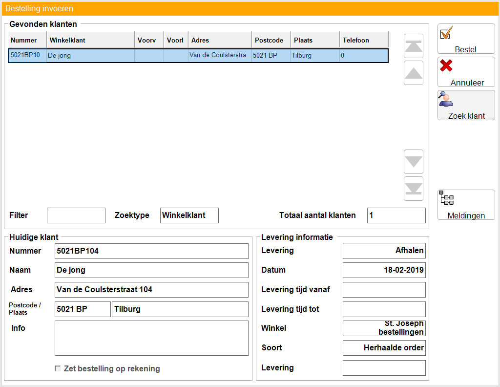U krijgt een overzicht van alle bestellingen van 11-2. Kies de juiste.