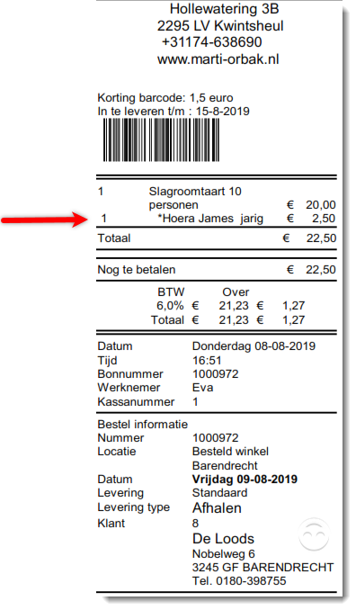 Tussen de vraagtekens kunt u ook een vraag typen, die getoond wordt aan de winkelmedewerkster in het venster waar ze de aanvullende tekst invult. Bijvoorbeeld ?Voer een naam in? of ?Vul de leeftijd in?