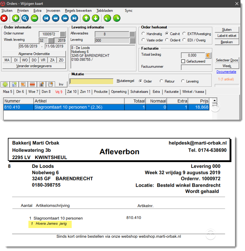 De teksten komen vervolgens ook op die manier in de orders en dus op de lijsten.