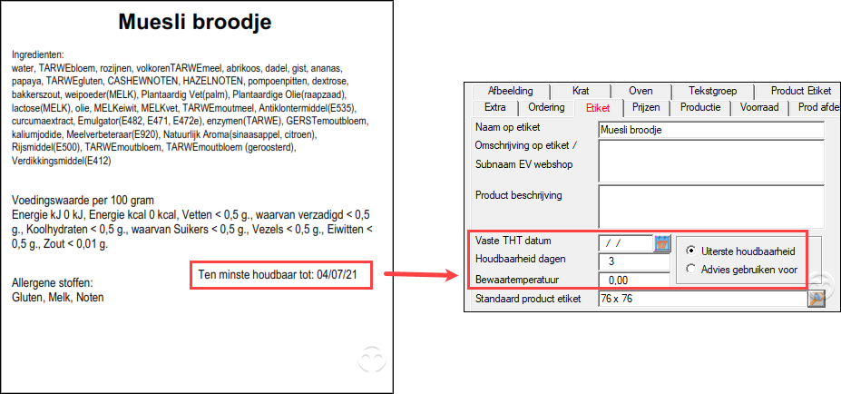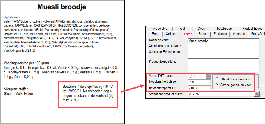 Om een bepaalde houdbaarheid incl. bewaaromstandigheden op een etiket weer te geven zijn onderstaande variaties vanuit de artikelkaart mogelijk.