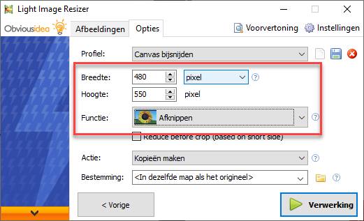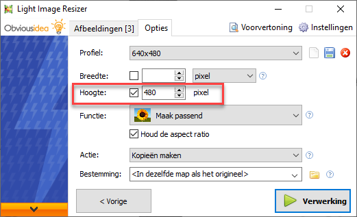 5. Zet de Hoogte op 480 pixel (kun je ook uitvinken, want de breedte is al 480, zie stap 5)