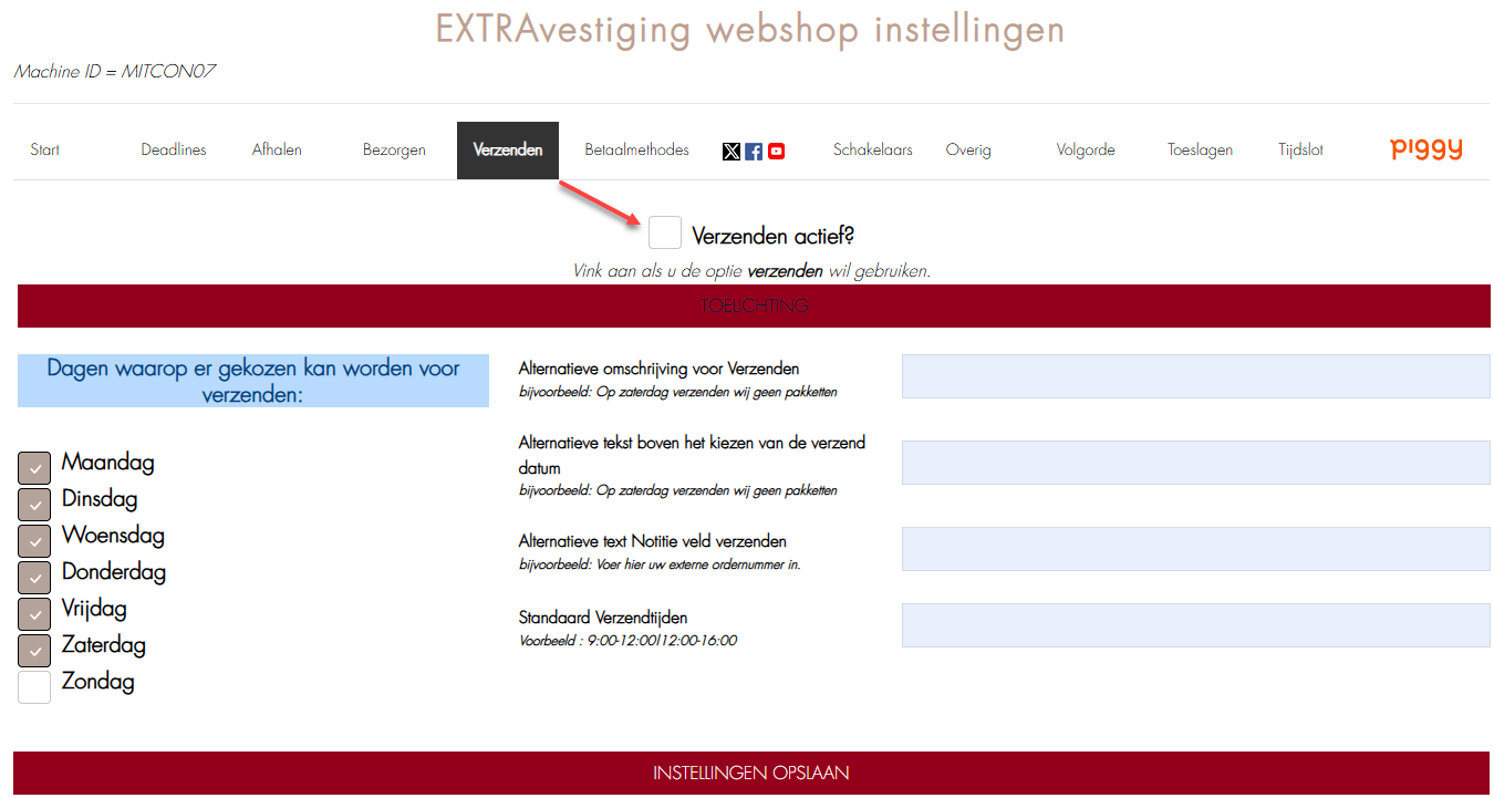 Hier klikt u op tabblad Verzenden en zet het onderstaande vinkje aan en klikt op Instellingen opslaan: