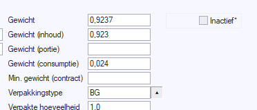 Als eerste is er bij de gewichten een nieuw veld "gewichten (consumptie)" toegevoegd