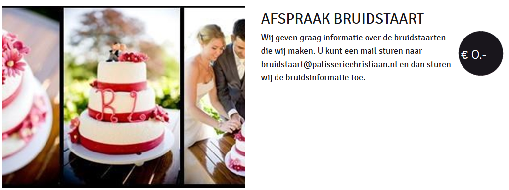 Er zijn producten waarvan u wel wilt dat uw klanten deze kunnen zien, maar waarvan u NIET wilt dat ze deze bestellen via de webshop. Denk daarbij bijvoorbeeld aan Bruidstaarten, u wilt de klanten laten zien dat u mooie bruidstaarten maakt, maar dat de klant hiervoor contact met u opneemt.
