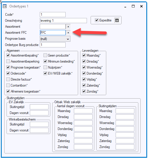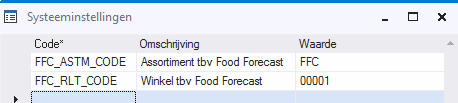 Bij ordertypes waarvoor geen prognose door Food Forecast aangeleverd moeten worden laat u het assortiment FFC leeg.