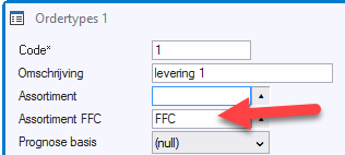 Per ordertype dient u een assortiment voor Food Forecast te koppelen. Food Forecast kan slechts een prognose voor 1 ordertype aanleveren. Als u per ordertype met verschillende assortimenten werkt dient u dit per ordertype aan te geven.