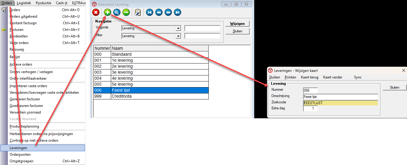 Om een extra order aan te maken, voor bijvoorbeeld een feestdagen levering moet er eerst een nieuwe levering aangemaakt worden (tenzij deze al bestaat uiteraard).