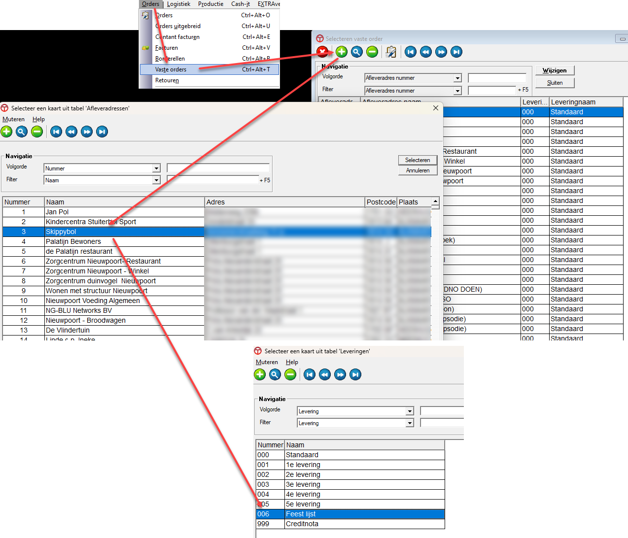 Hierna kun je via [Orders | Vaste orders] een nieuwe order aanmaken en deze op de nieuw aangemaakte levering zetten: